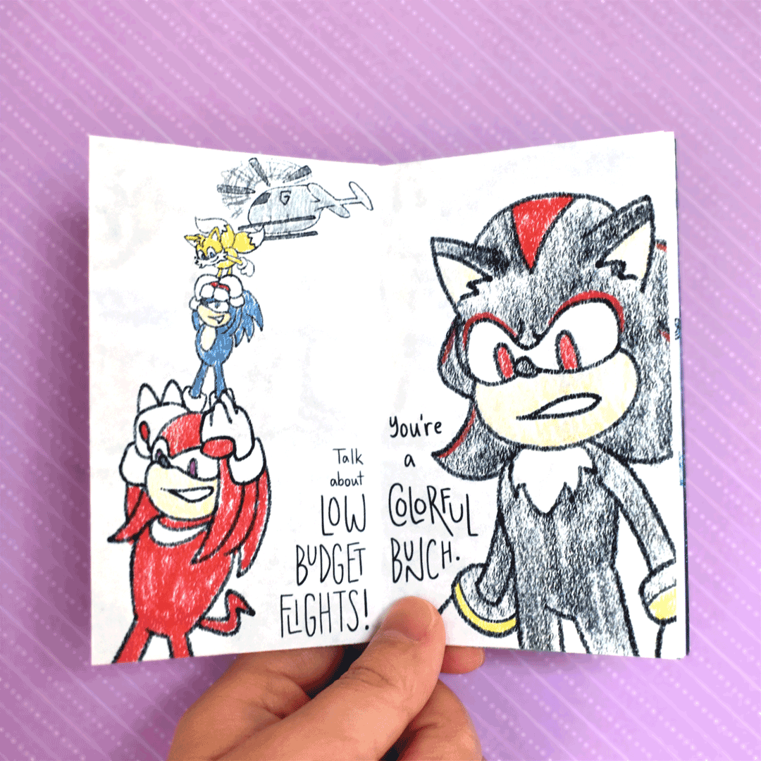 An 8-page zine tribute to Sonic Adventure 2/Sonic Movie 3. Has a secret bonus illustration on the backside once unfolded!